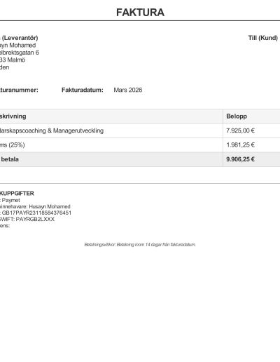 Företagets namn: Husayn Mohamed (Kapat namn)