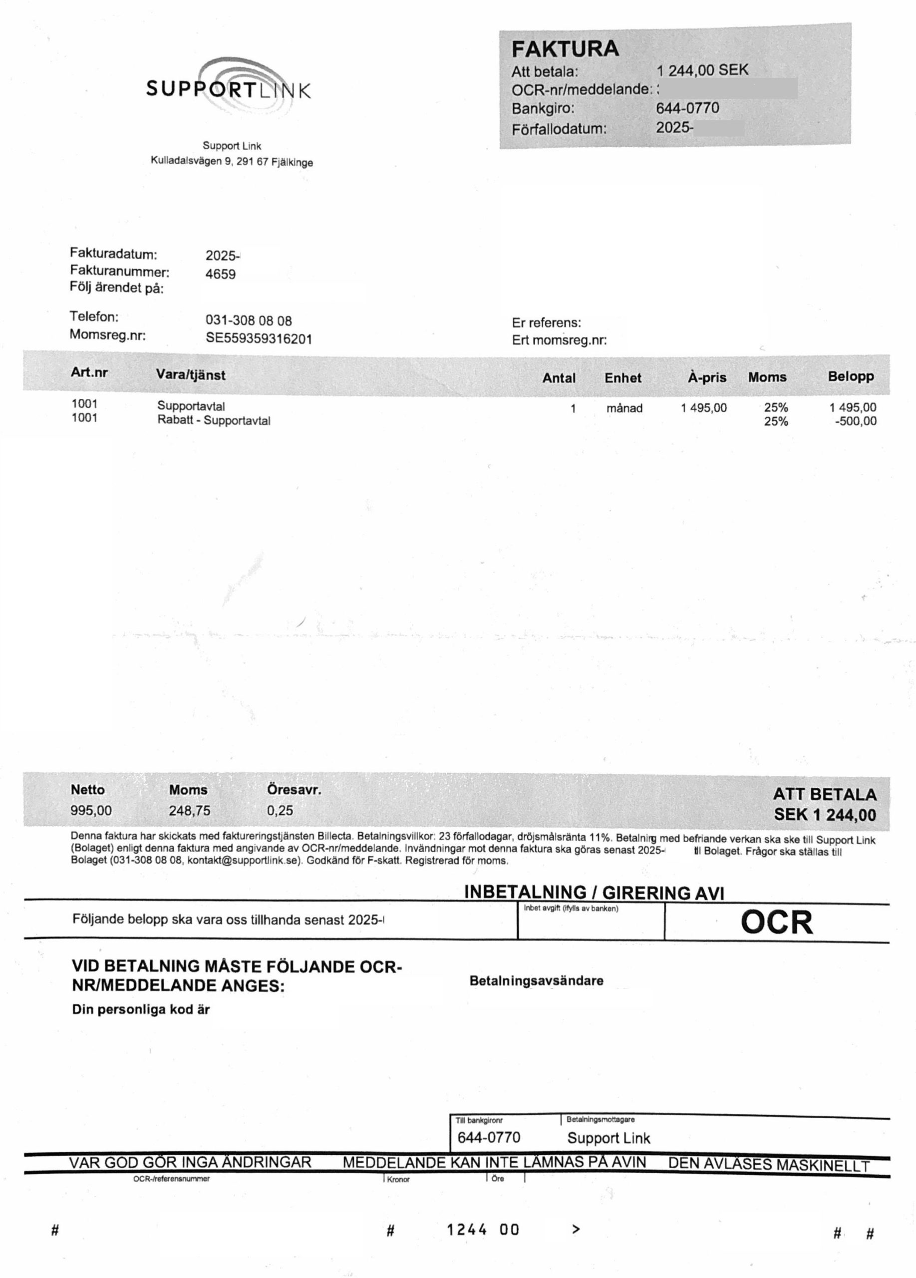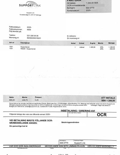 - Fakturan avser Supportavtal